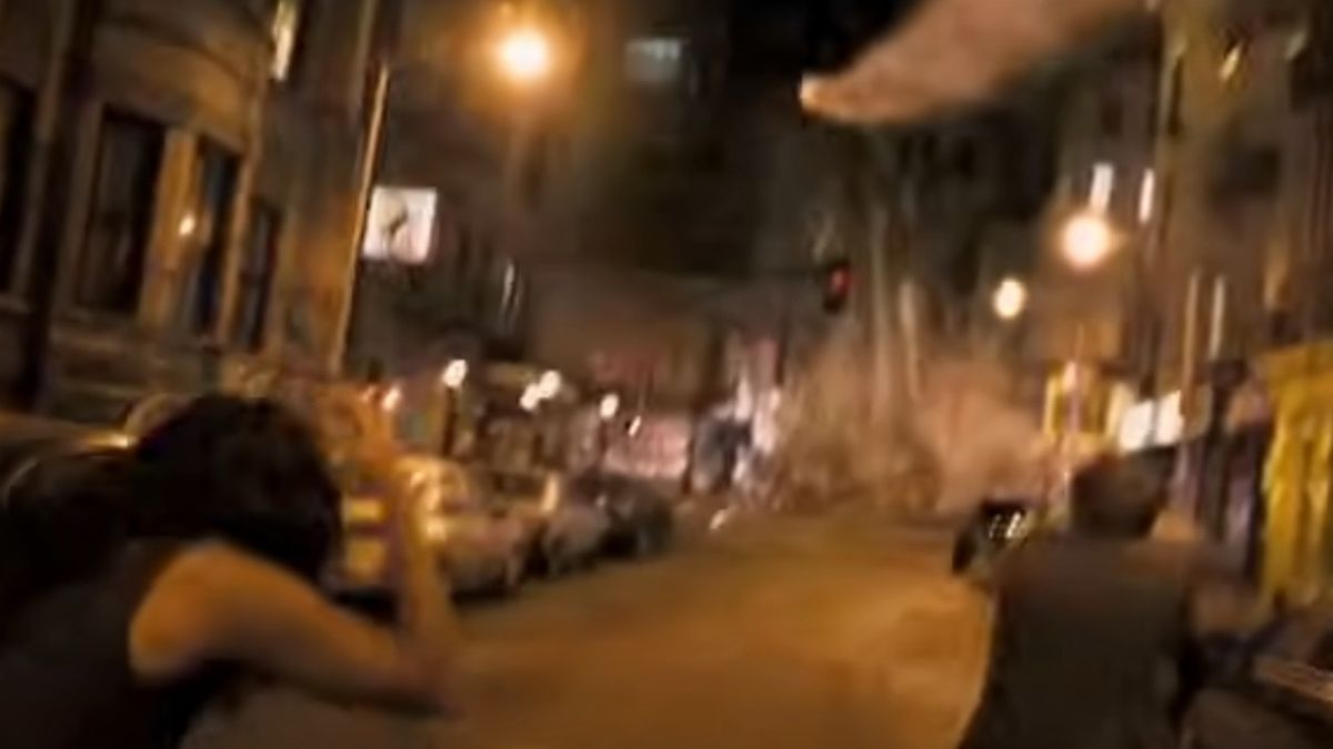 None of that is present in Cloverfield, though. In fact, each new event makes things even worse for our protagonists, and they don’t fight back because they can’t fight back. They’re just trying to survive. For example, when the spider-creature-parasite-thingies arrive on the scene, one of them bites a character, and she literally explodes later on. When our heroes get into a helicopter, the monster brings it back down again, so there’s really no escape.